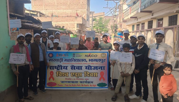भागलपुर। दिनांक 01 दिसंबर, 2024 (रविवार) को मारवाड़ी महाविद्यालय भागलपुर में राष्ट्रीय सेवा योजना के बैनर तले कार्यक्रम पदाधिकारी डॉ. विजय कुमार के नेतृत्व में विश्व एड्स दिवस कार्यक्रम आयोजित किया गया। कार्यक्रम की शुरुआत सर्वप्रथम महाविद्यालय परिसर में रेड रिबन के आकार में मानव श्रृंखला बनाया गया। उसके बाद महाविद्यालय परिसर से एड्स जागरूकता रैली निकाली गई। रैली महाविद्यालय से शुरू होकर गेस्ट हाउस होते हुए राष्ट्रीय सेवा योजना, मारवाड़ी महाविद्यालय, भागलपुर के द्वारा गोद लिए गए गांव हरिजन टोला, साहिबगंज पहुंचा। उसके बाद हरिजन टोला के चारों ओर घूमकर रैली के माध्यम से जागरूकता फैलाई गई।