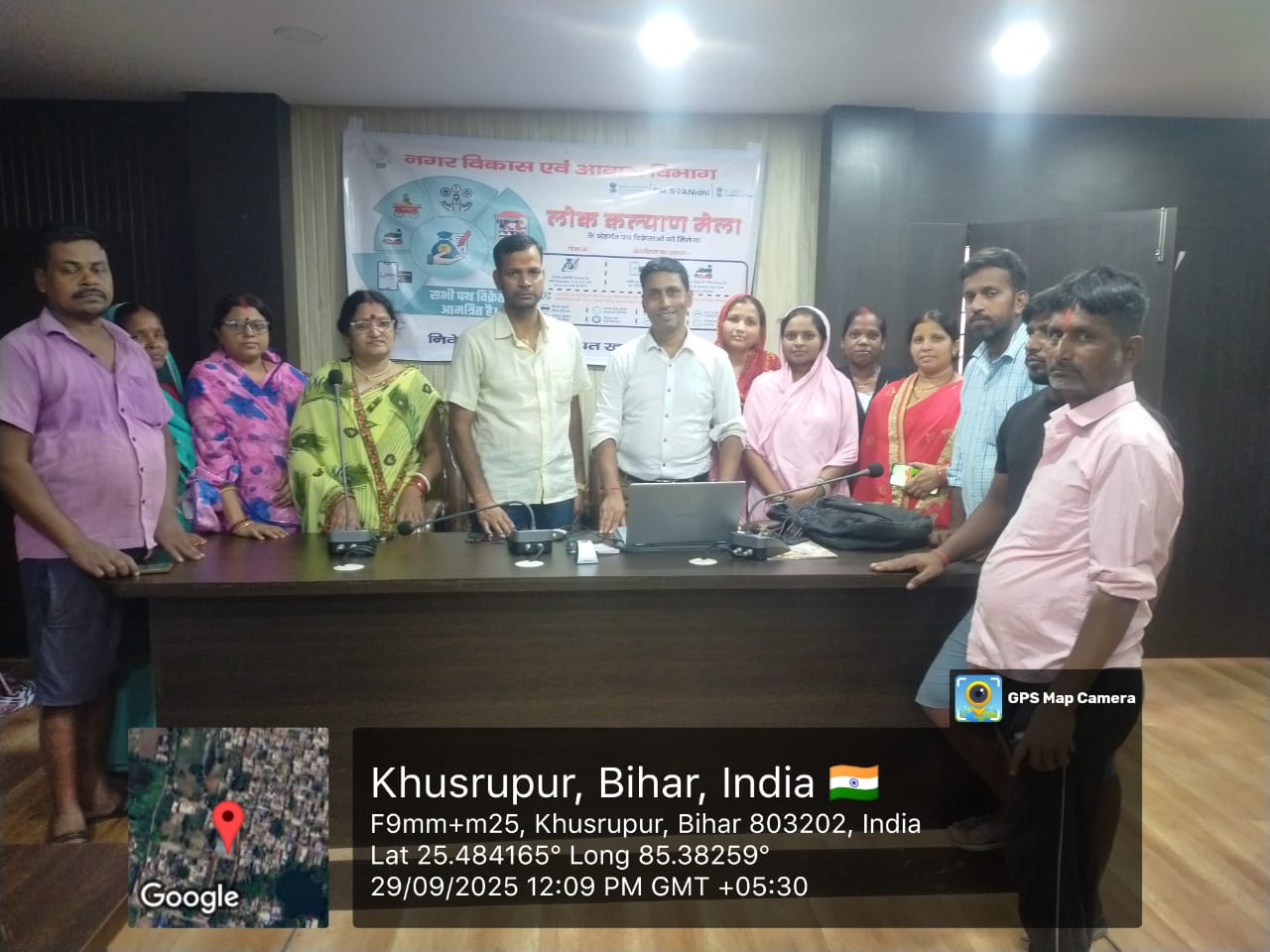 खुसरूपुर। नगर पंचायत खुसरूपुर में दिनांक 29 सितंबर 2025 को लोक कल्याण मेला का आयोजन संपन्न हुआ, जिसमें पीएम स्वनिधि योजना के अंतर्गत फुटपाथ विक्रेताओं को लाभ पहुंचाने के लिए विशेष अभियान चलाया गया।