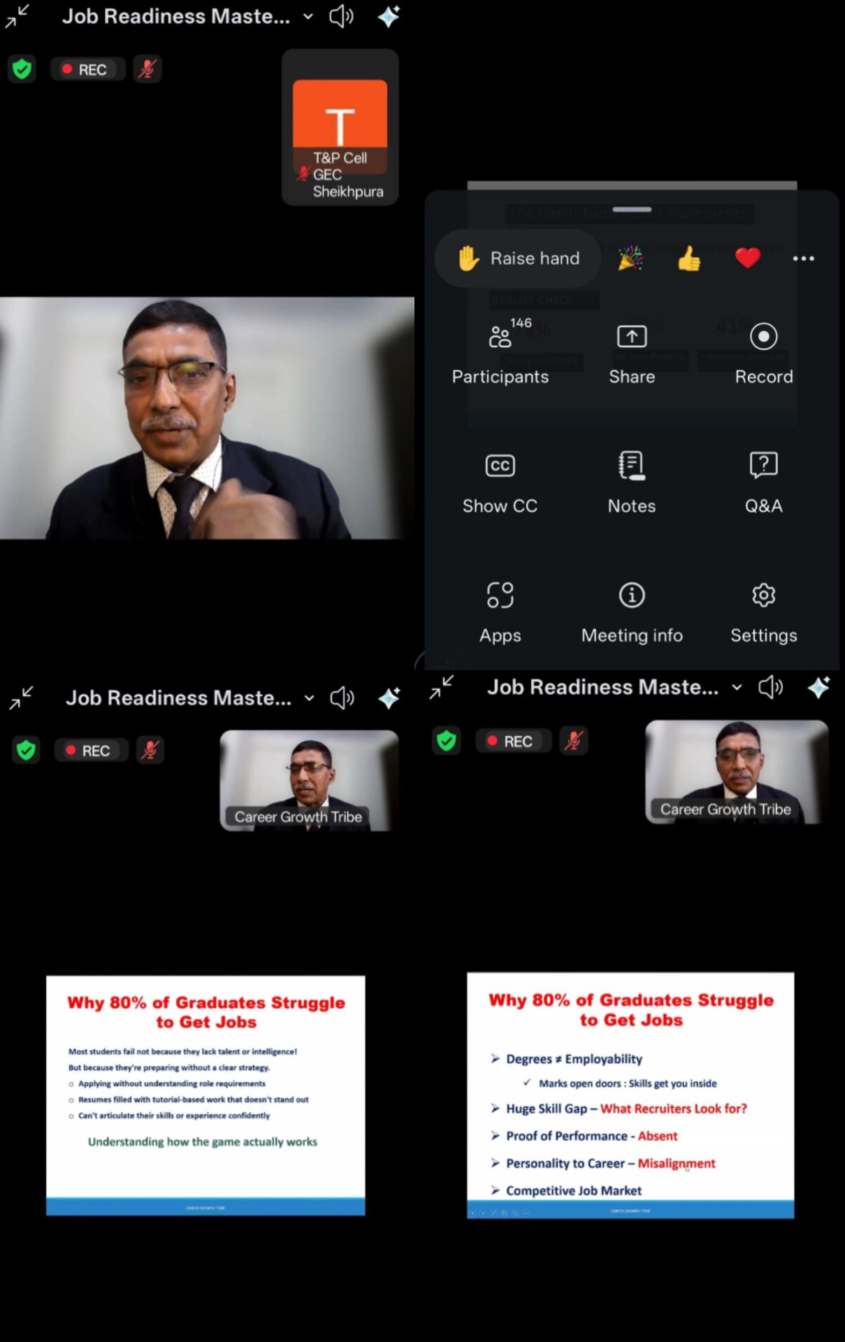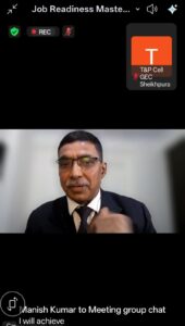 शेखपुरा। राजकीय अभियंत्रण महाविद्यालय (GEC), शेखपुरा के ट्रेनिंग एंड प्लेसमेंट सेल (T&P Cell) द्वारा दिनांक 10 फरवरी 2026 की शाम 7:15 बजे छात्रों के करियर मार्गदर्शन हेतु ऑनलाइन माध्यम (Online Mode) से एक विशेष वेबिनार का आयोजन किया गया। “Get Job Ready” विषय पर आयोजित यह वेबिनार ‘Career Growth Tribe’ के सहयोग से संपन्न हुआ।