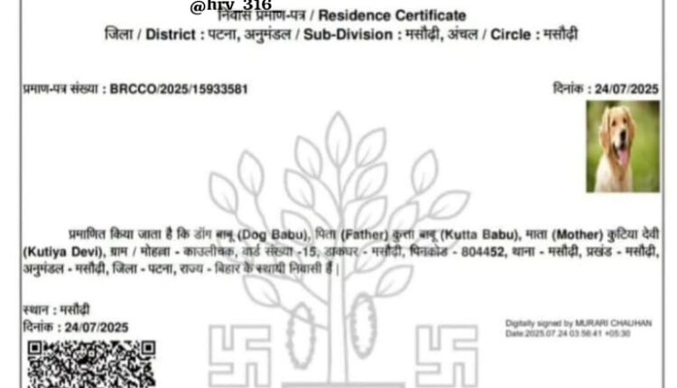“पटना में डॉग बाबू को मिला निवास प्रमाणपत्र: सरकारी तंत्र की खामियों का खुलासा”