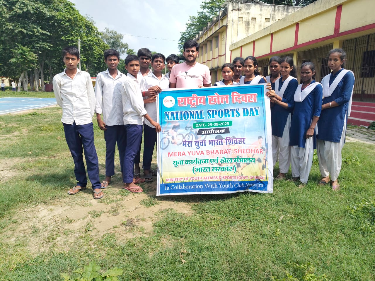 शिवहर। मेरा युवा भारत शिवहर के तत्वावधान में खेल दिवस के अवसर पर तरियानी प्रखंड में नरवारा ग्राम के हाई स्कूल के खेल मैदान में दिनांक 29 अगस्त 2025 को भव्य खेल महोत्सव का आयोजन हुआ। इस कार्यक्रम का सफल संचालन जिला युवा पदाधिकारी राकेश कुमार, राष्ट्रीय युवा स्वयंसेवक शुभम कुमार मिश्रा, और स्कूल के प्रधानाध्यापक शत्रुधन राय के नेतृत्व में संपन्न हुआ।